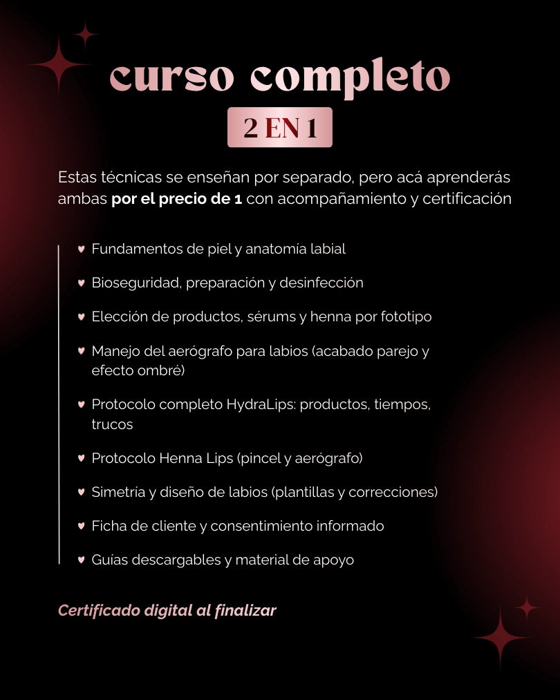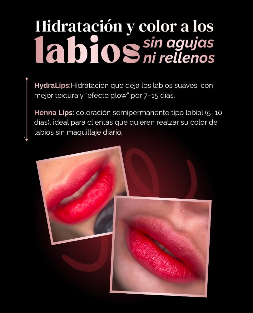 No. HydraLips es no invasivo y se trabaja con nano tips (no agujas). Henna Lips es aplicación superficial de color.